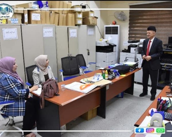 وقد تجولت اللجنة الوزارية برفقة السيد عميد الكلية ومعاونة للشؤون العلمية ،واطلعت على سير العملية الامتحانية في قاعات الكلية ،وكذلك اطلعت اللجنة الوزارية على آلية عمل اللجنة الامتحانية واستمعت الى شرح مفصل عن طبيعة العمل فيها.