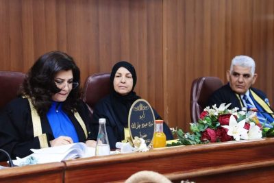 تألفت لجنة المناقشة من الأستاذ الدكتور سهام الشجيري رئيساً والأستاذ المساعد الدكتورة ندى عبود عضواً والأستاذ الدكتور حسين علي الفلاحي عضوأ خارجياً والأستاذ الدكتور ليث بدر عضواً ومشرفاً.
