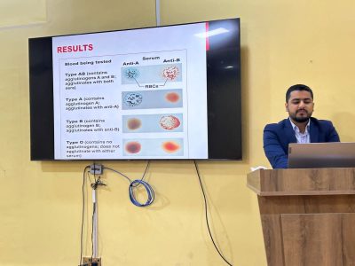 تناولت المحاضرات في الدورة الاي قدمها (ا.م.د انتصار منصور ،م.د ايناس سعد ، م.م مروة اسماعيل ، م.م احمد مصطفى) موضوع وراثة فصائل الدم، وشرح كيفية الكشف عنها باستخدام طرق متعددة، بما في ذلك طريقة slide وطريقة الTUBE. تم تنفيذ الجزء العملي للمحاضرة في مختبر العلوم الأساسية، حيث تمكن الحضور من تطبيق ما تعلموه والكشف عن فصائل الدم لبعضهم.