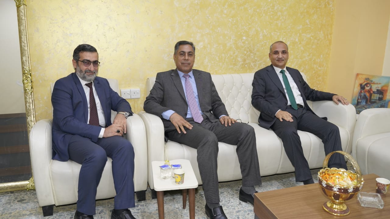 ورافق السيد المساعد العلمي السيد عميد الكلية الاستاذ الدكتور كاظم خليفة الحلبوسي ومعاونيه كلاً من الأستاذ الدكتور يعقوب ناظم أحمد معاون شؤون الطلبة والاستاذ المساعد الدكتور عبد الخالق ناجي عبيد معاون العميد للشؤون العلمية والاستاذ المساعد الدكتور معتز قاسم المعاضيدي معاون العميد للشؤون الإدارية.