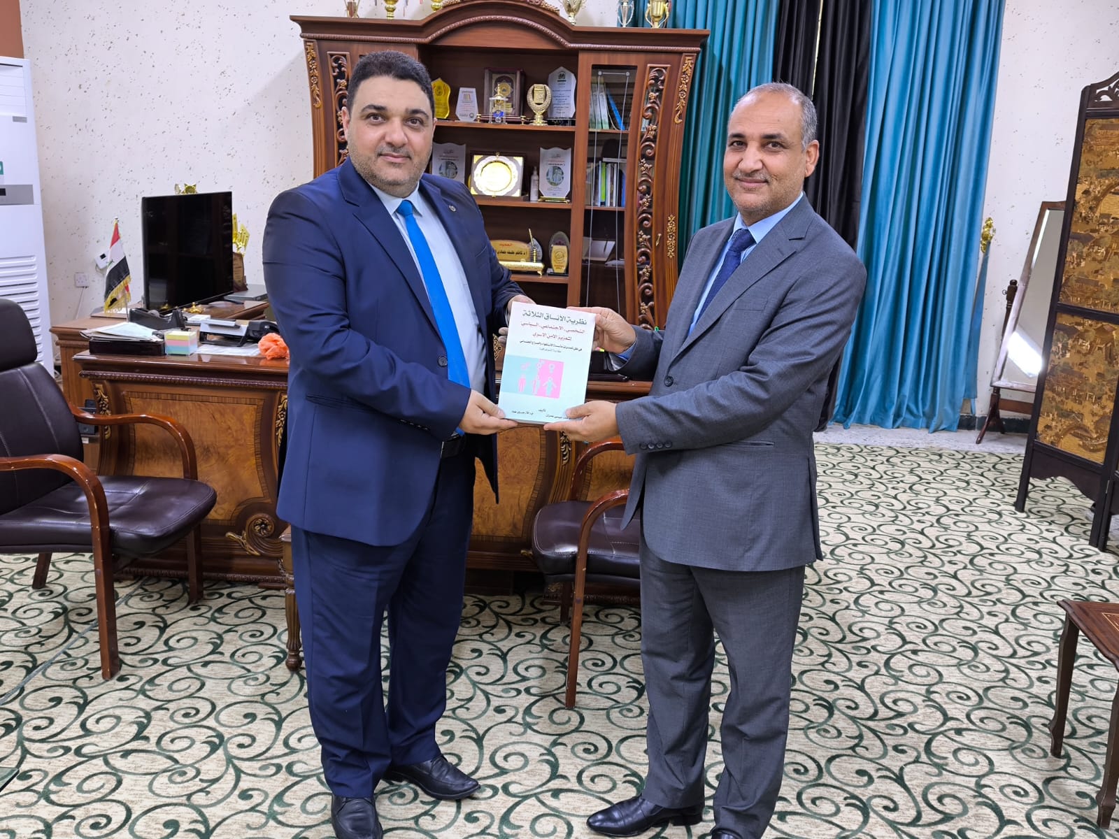 تدريسي في قسم العقيدة يهدي نسخة من اصداره الجديد للسيد عميد كلية العلوم الإسلامية