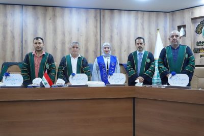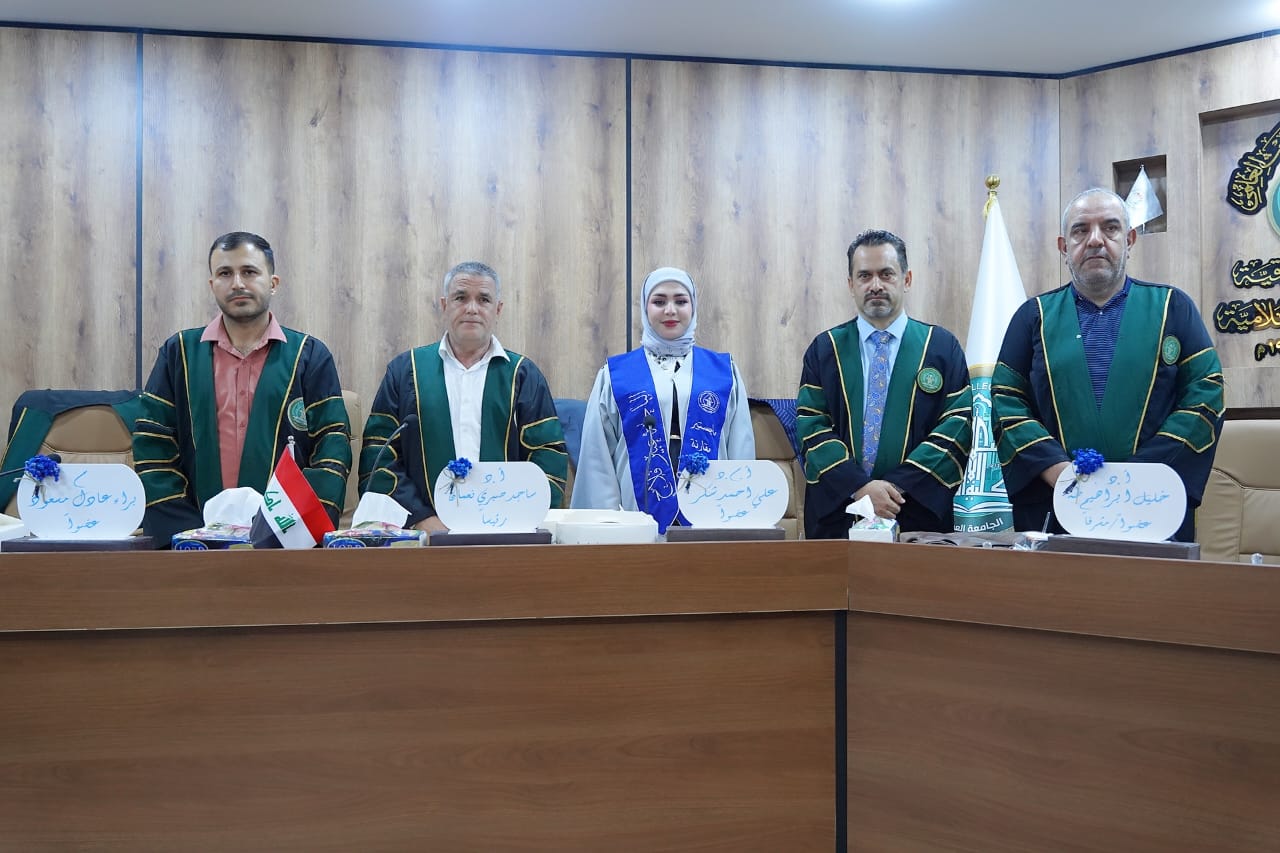 تـــــألفت لجنة المناقشة برئاســــة الأســـتاذ الدكتور ساجد صبري نعمان وعضوية كل من الأستاذ المساعد الدكتــــور علي احمد شكر والدكتور براء عادل مسعود و الأســتاذ الدكتور خليل ابراهيم طه، عضواً ومشرفاً .