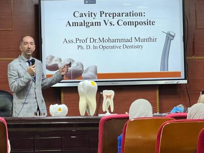 قدم الدورة الأستاذ المساعد الدكتور محمد منذر، وشملت محاضرات عن تحضير تجاويف الأسنان واستخدام الحشوات المختلفة، مع التركيز على مقارنة الحشوات المعدنية (الأملغم) والحشوات التجميلية (الكومبوزيت).