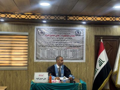 نوقشت صباح اليوم الأربعاء الموافق 9 تموز 2025، في كلية التربية / الجامعة العراقية، أطروحة الدكتوراه المقدمة من الطالب علي حسين كواد، الموسومة: “مشكل القرآن الكريم في تفسير مفاتيح الغيب للإمام الرازي (ت: 606هـ) من أول سورة النساء إلى آخر سورة يونس – جمعًا ودراسة”. وقد جرت المناقشة على قاعة القدس في الكلية، بحضور عدد من الأساتذة والباحثين وطلبة الدراسات العليا.