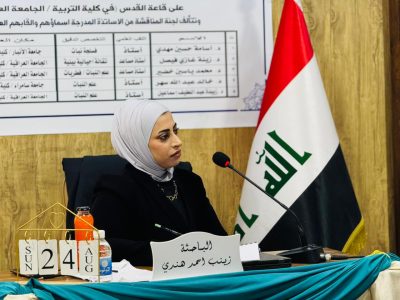 نالت الطالبة زينب أحمد هندي الحلبوسي تقدير امتياز عن رسالتها الموسومة: “تأثير أوكسيد الحديد النانوي والأحماض الأمينية في صفات النمو والتشريح لنبات الكجرات (Hibiscus sabdariffa L.)”، وذلك بعد مناقشتها في قاعة القدس يوم الأحد الموافق 24/8/2025. وتهدف الرسالة إلى معرفة التأثير المتداخل بين أوكسيد الحديد النانوي والأحماض الأمينية في تحسين صفات النمو والتراكيب التشريحية للنبات.